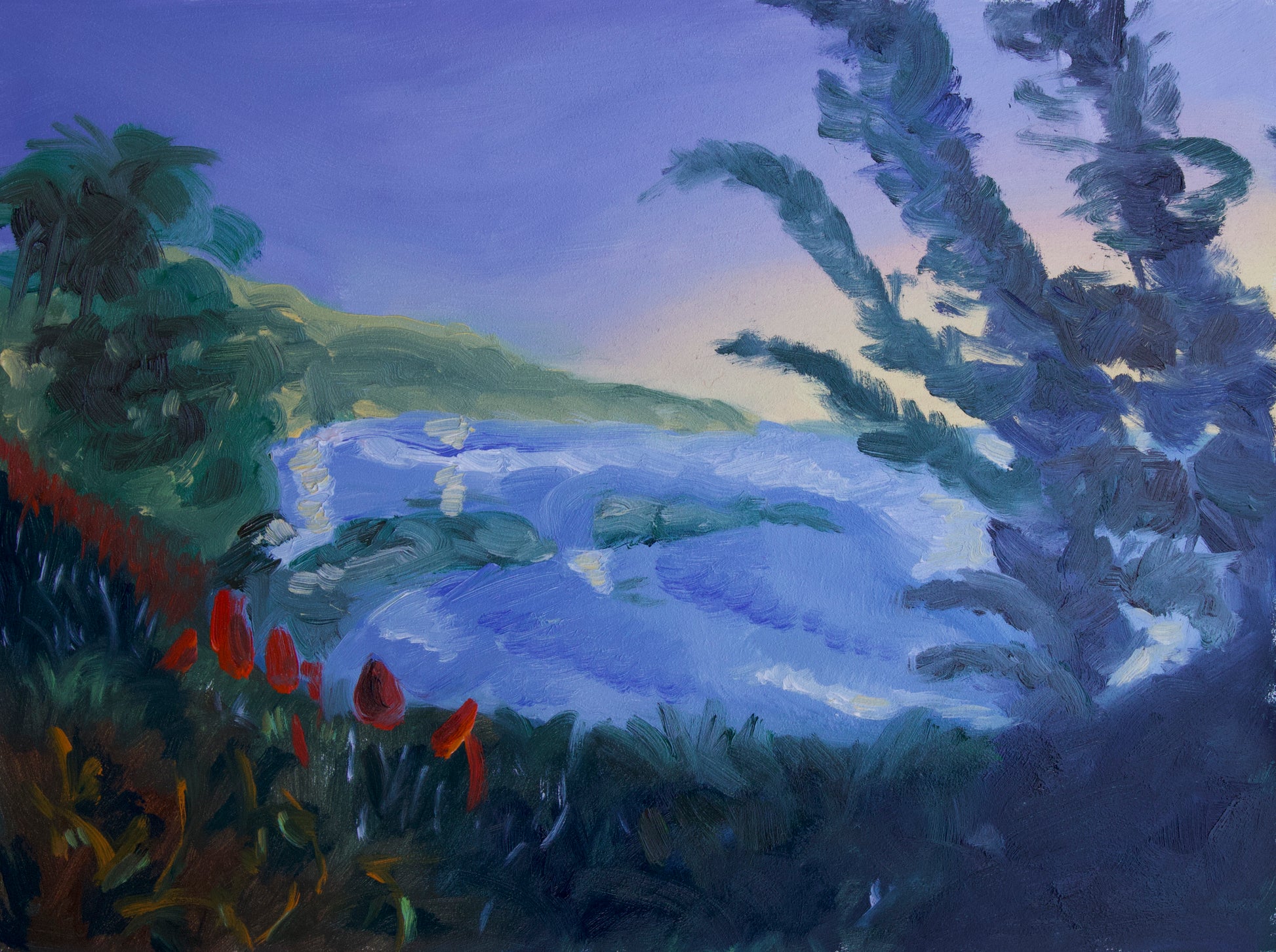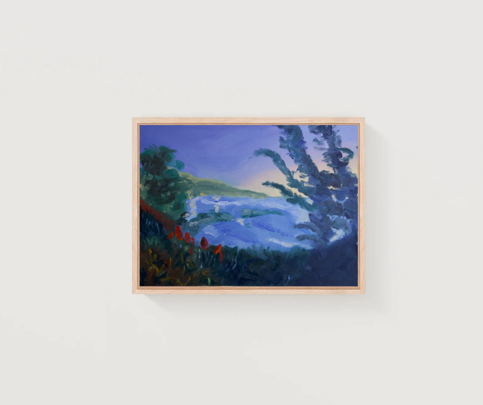 Oil on gessobord, with maple wood floater frame